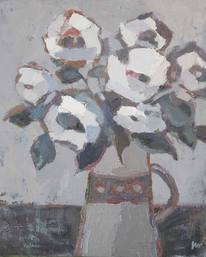 Currently I paint in oil and acrylic, and while my work so far has included all subjects, ( including figurative paintings) I am now concentrating mainly on abstract landscapes and still-lives, with colour being the most important element in my work. I do also aim for textural variety and simplicity of composition, with the conveying of the atmosphere of my subjects being more important than their literal portrayal.