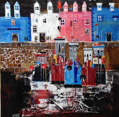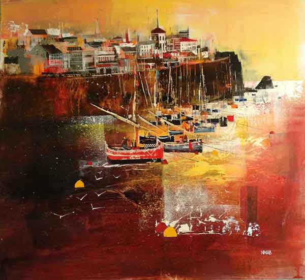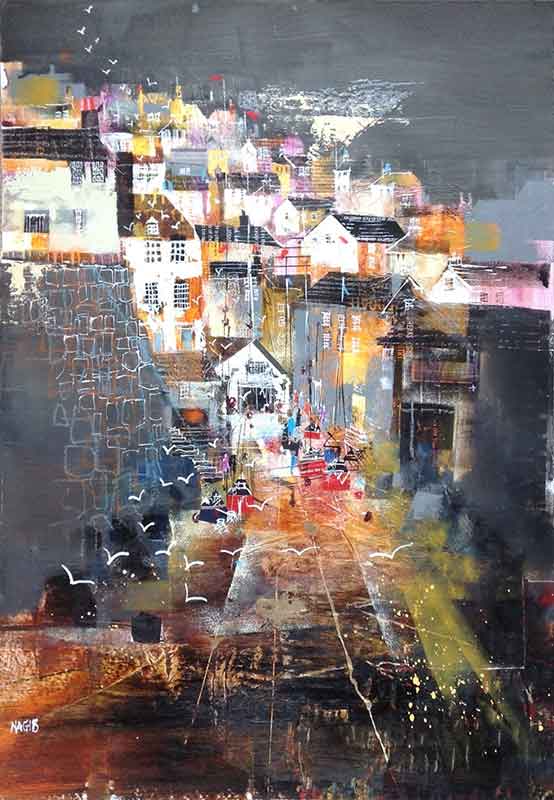 Although he enjoyed drawing and painting from an early age, Nagib was encouraged to pursue a career in business and has only recently been able to begin to explore his artistic nature. Now, with the luxury of time, he has slowly developed his technique from working mainly in watercolours to his present, loose style using mixed media and often collage to capture the vibrancy and immediacy of his chosen scene.