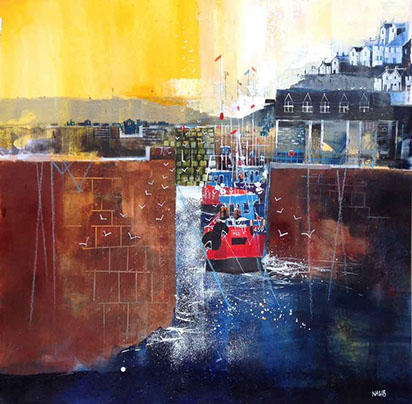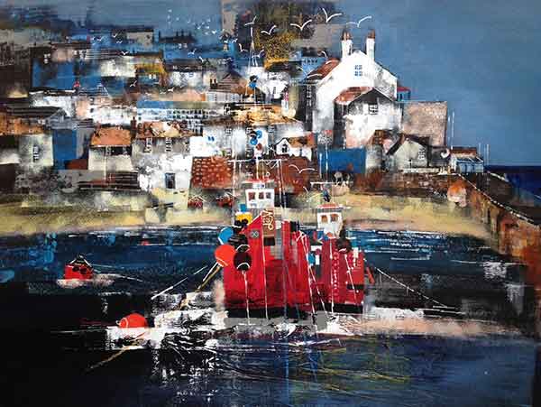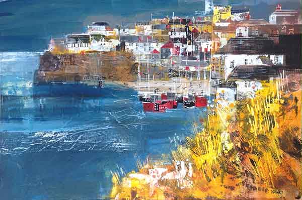 Here began his fascination with the West Country and its fishing villages, rugged coastlines and unpredictable weather, a fascination which has continued throughout his life and which has provided much of the inspiration for his paintings in later years.