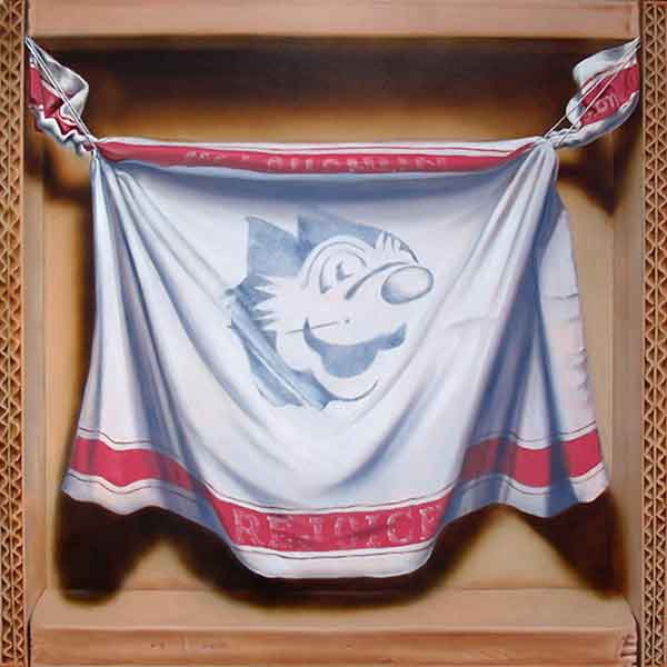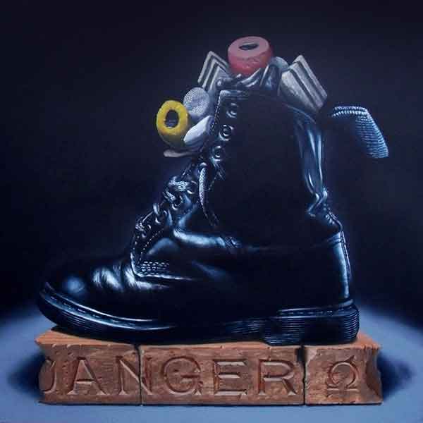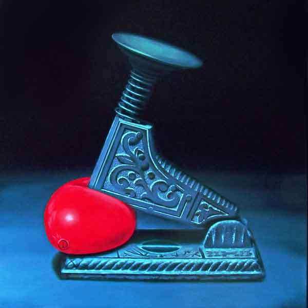 I paint existential objects. Their existence is more important than how they work or are used. They are ‘here’ and ‘now’; stare back at us; confront us and beg questions. As adults we devote ourselves to the futile search for security. These anxious objects remind me that nothing is certain – only that I exist, for now.