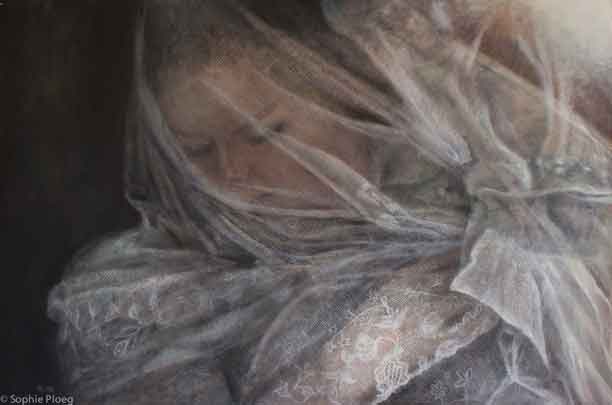 Drawing and painting has always been part of my life. After my studies and the birth of my children I decided to take it on more seriously. My love for art history comes through in my work where the past plays an important role. Antique textiles and references to old masters (17th century) are integrated into my works. I explore portraits, figures and fabrics; I relish in portraying the textures of different surfaces and materials, especially lace. The challenge of depicting fabrics convincingly is something I will not tire of for a long time. Velvet, silk but most of all lace holds my attention. The enormous variety in types of lace, the history of lace, and its sheer beauty is something I aim to share in my paintings.